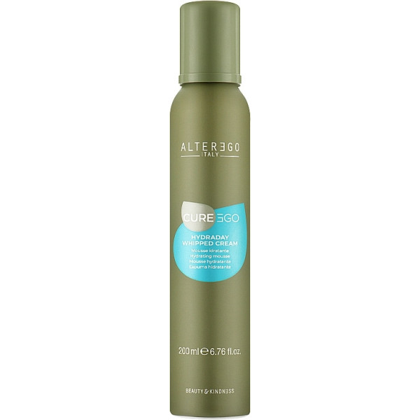 CureEgo Hydraday Whipped Cream від бренду Alter Ego — це найкраща підготовка волосся до укладки та створення різноманітних зачісок. Він якісно впорається із класичною задачею кондиціонера — закриє лусочки, попередивши розшарування, а також знизить ризики ламкості. Окрім того, мус створить гарний глянцевий блиск та зміцнить пасма по усій довжині. Вони стануть більш піддатливими укладкам, набудуть пружності та матимуть чудовий свіжий аромат.