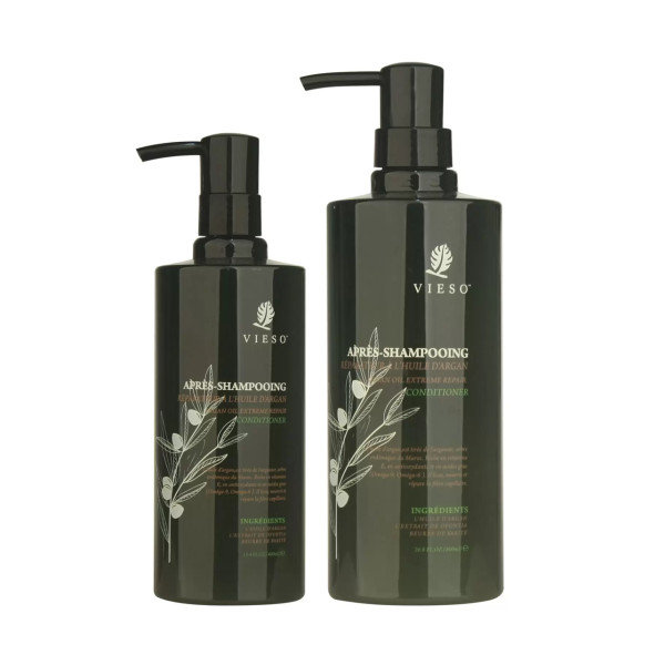 Косметика для волосся Vieso - це веганські склади, компоненти яких сертифіковані GMP і FDA. Серія з олією арганії призначена для глибого відновлення всіх типів волосся, у тому числі фарбованого і кучерявого. Відновлювальний кондиціонер рекомендовано наносити щоразу після очищення волосся шампунем Vieso, надаючи локонам блиск, шовковистість і сяйво. Засіб полегшує розчісування, запобігає ламкості, посіченості та сплутаності волосся.