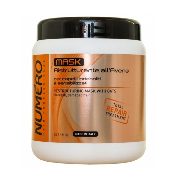 Brelil Numero відновлююча маска з екстрактом вівса створена для догляду за пошкодженим волоссям. Завдяки натуральному компоненту в своєму складі, маска відновлює пошкоджені ділянки волосся, зволожує їх по всій довжині. Її спеціальна формула не обважнює волосся, надає їм блиск і природну красу.