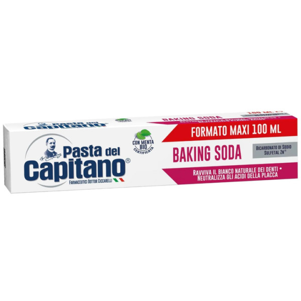 - завдяки вмісту бікарбонату натрію та фтору зубна паста Pasta del Capitano Baking Soda гарантує делікатне відбілювання