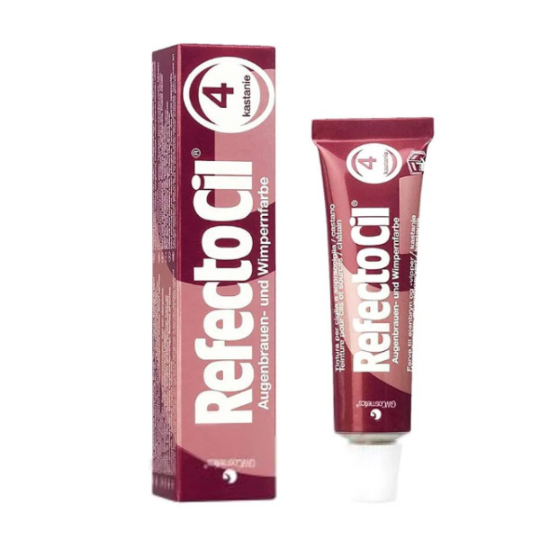 Фарба Chestnut RefectoCil - високоякісна крем-фарба для надання гармонійного відтінку бровам та віям без шкоди для них. Інноваційна формула забезпечує однорідне фарбування кожної волосинки без пропусків та плям з гарантованою стійкістю та насиченістю кольору до 6 тижнів. Фарба RefectoCil має м'яку текстуру мусу, яка не розтікається і комфортна в роботі. Засіб легко розподіляється по поверхні волосків, чудово підійде для промальовування форми брів або густого та насиченого фарбування вій від коріння до кінчиків.