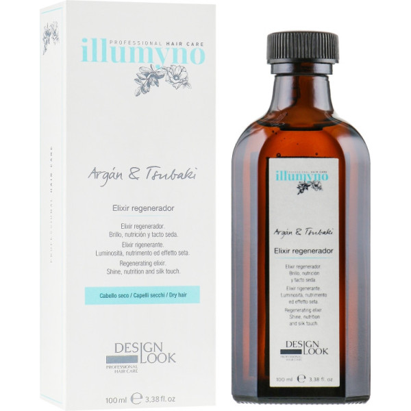 Illumyno Argan Tsubaki Elixir Regenerator — універсальний засіб, який не лише регенерує структуру пасм, а й полегшує розчісування. Формула продукту містить різні олії, які живлять і склеюють посічені кінчики, не залишають жирного блиску. Фахівці бренда гарантують швидку всотуваність еліксиру, тому можете користуватися сироваткою в слушний для вас час, не турбуючись, що вона залишить сліди на гребінці або аксесуарах для волосся. З таким помічником ваші локони завжди виглядатимуть розкішно.