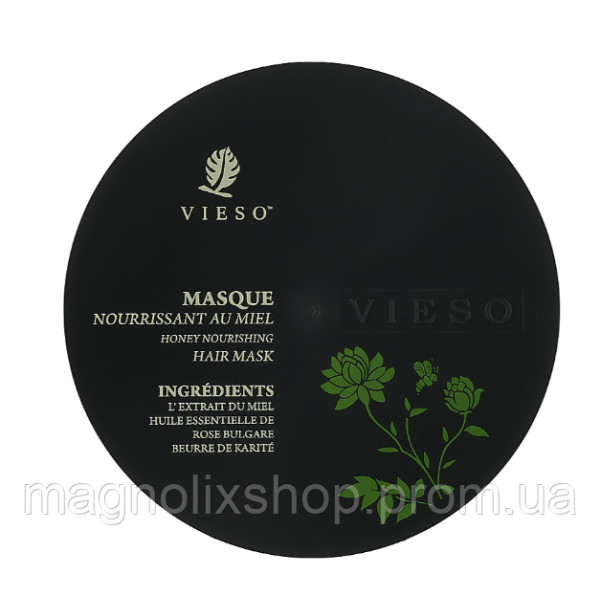 Живильна маска для волосся від бренда Vieso збагачена медом — сильним відновлювальним компонентом рослинного походження. Honey Nourishing Hair Mask регенерує пошкоджені, ослаблені локони, повертає їм шарм природного блиску, запобігає повторному формуванню маленьких недосконалостей. Функціональний засіб робить пасма більш гладенькими, сильними та слухняними, позбавляє їх скупчень статики, що, зі свого боку, полегшує розчісування і скорочує тривалість укладання. До того ж, універсальний б’юті-продукт містить ефірні олії рослин, які забезпечують позитивний вплив на стан вразливої шкіри голови. Запашні витяжки заспокоюють її подразнені ділянки, загоюють подряпини, рани.