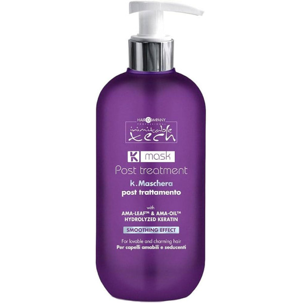 Маска відрізняється безпечною рецептурою, яка досягається завдяки науковим дослідженням та досягненням виробника. В основі формули - дбайливий захист волосся клієнта та безпека перукаря. Тому у всіх засобах K-ритуалу Perfect Liss відсутній формальдегід - головна токсична речовина аналогічних процедур. Крім того, важливим кроком професійної процедури випрямлення волосся Hair Company є нанесення К-маски. Її користь неможливо переоцінити. Вона наноситься на завершальному етапі і націлена на глибоке кондиціювання волосся для бездоганного результату і тривалого збереження глянсової гладкості.