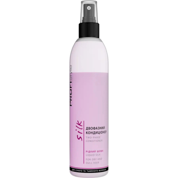 Застосування: збовтати флакон для змішування двох фаз, рівномірно розпилити на вологе або сухе волосся. Розчесати. Не змивати. Ідеальний у поєднанні з іншими засобами серії Silk PROFIStyle.