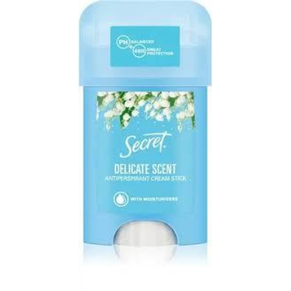 Антиперспірант Secret Delicate має збалансований pH і зволожуючі речовини, які роблять шкіру приємно гладкою і свіжою протягом 48 годин. Ніщо не завадить тобі почуватися свіжою протягом усього дня з кремовим дезодорантом і антиперспірантом-стіком із ніжним ароматом.