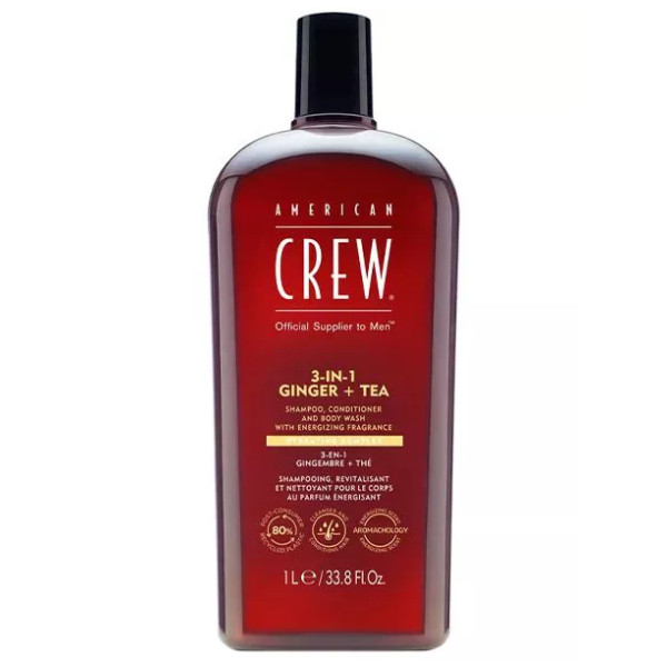 American Crew 3-in-1 Energizing Ginger + Tea 450 мл, універсальний засіб для догляду, який поєднує силу шампуню, кондиціонера та засобу для миття тіла в одному зручному флаконі. Ця формула «все в одному» розроблена для очищення, кондиціонування та зміцнення вашого волосся та тіла, даруючи вам відчуття оновленості та відновлення.