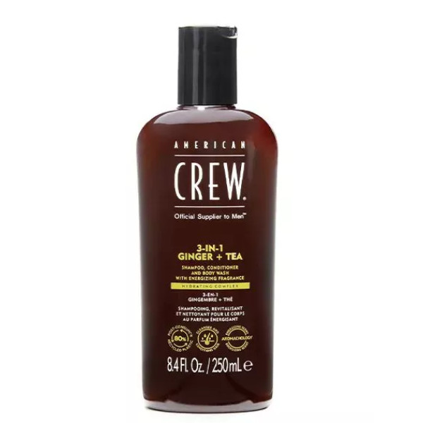 American Crew 3-in-1 Energizing Ginger + Tea 450 мл, універсальний засіб для догляду, який поєднує силу шампуню, кондиціонера та засобу для миття тіла в одному зручному флаконі. Ця формула «все в одному» розроблена для очищення, кондиціонування та зміцнення вашого волосся та тіла, даруючи вам відчуття оновленості та відновлення.