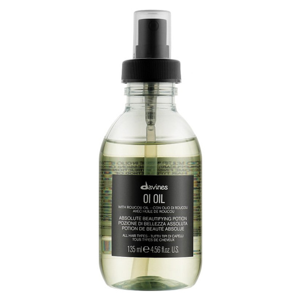Масло для волосся Davines OI Oil - універсальна олія, яка додає волоссю блиску та м'якості, одночасно розплутуючи та усуваючи пухнастість, особливо добре діє на жорстке або сухе волосся. Структура волосся залишається захищеною, не обтяжуючи його. Заснована на олії руку, секретному інгредієнті, який полюбляють корінні мешканці тропічних лісів Амазонки, що використовують плоди помадного дерева для захисту волосся від сонця та інших щоденних стресів.