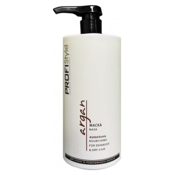 Profi style Маска живильна з олією арганії. Підходить для сухого та пошкодженого волосся. Збагачена активним комплексом (олія арганії, мікропротеїни пшениці, кератин, пантенол), призначений для догляду за сухим, ламким та пошкодженим волоссям. Олія арганії інтенсивно живити та зволожує волосся, робить його м'яким та яким еластичним, надає блиск. В результаті отримуємо відновлені структуру волосся та гідробаланс. Зменшені ламкість та січення кінчиків. М'яка якість, еластичність та блиск. Захист від УФ-проміння.