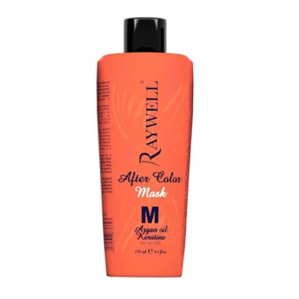 Маска After Color з кератином та аргановою олією створена спеціально для відновлення волосся, яке було пошкоджено в процесі фарбування, хімічного впливу, термоукладання або погодних умов. Якщо ви власниця пошкодженого волосся, тоді обов'язково скористайтесь регенеруючою маскою Raywell After Color. Маска закриває лусочки волосся, відновлює їх структуру, одночасно живлячи і зволожуючи. Збагачена олією аргани та кератином, маска здатна повернути до життя пошкоджені та тьмяні локони: відновити їхню структуру, захистити, зміцнити та відновити кожну волосинку після процедури фарбування.