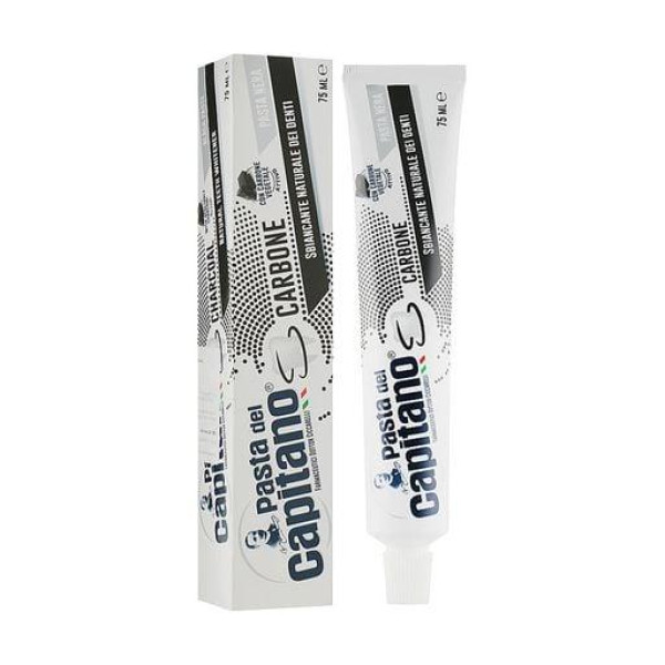 Мрієте, щоб зуби стали білими, а карієс та інші захворювання ротової порожнини не турбували вас? Рішення є! Зубна паста Pasta del Capitano Carbone з вугіллям наділена протизапальними й антибактеріальними властивостями. Завдяки новій технології чорна паста інтенсивно усуває наліт і відбілює зуби. Активним компонентом є деревне вугілля. Воно прекрасно очищає зуби від нальоту, видаляє залишки їжі та напоїв. Знижує гіперчутливість зубів та ясен. Компонент зміцнює зуби та інтенсивно відбілює їх. У його складі безліч вітамінів і мінералів, тому він допомагає отримати здорову усмішку. Після кожного чищення зубів з пастою Pasta del Capitano Carbone з вугіллям використовуйте ополіскувач. Він є профілактичним засобом від різних хвороб ротової порожнини, вбиває бактерії, відбілює зуби і дарує свіжість подиху.